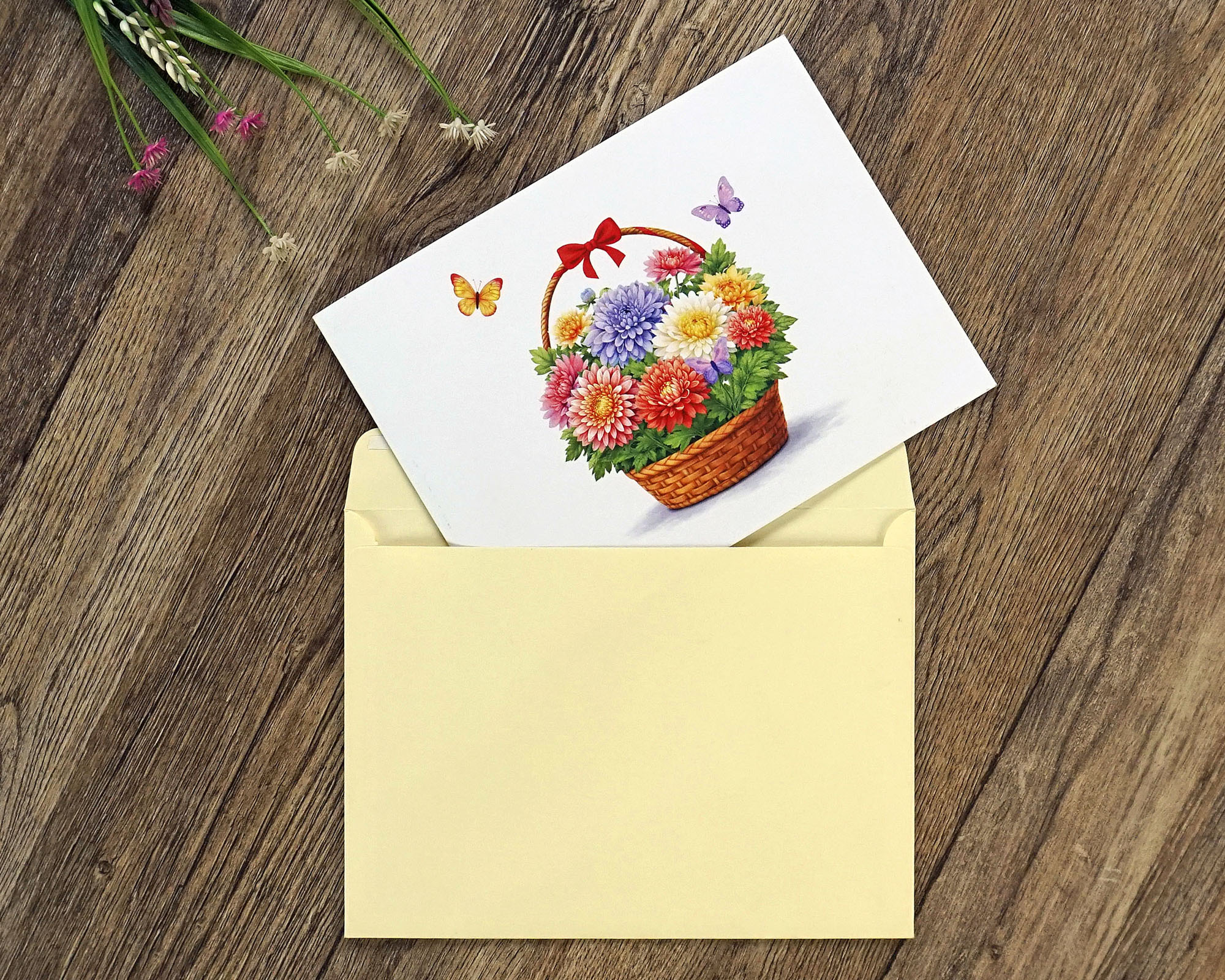 A vibrant basket of flowers 3D pop-up card manufacturer