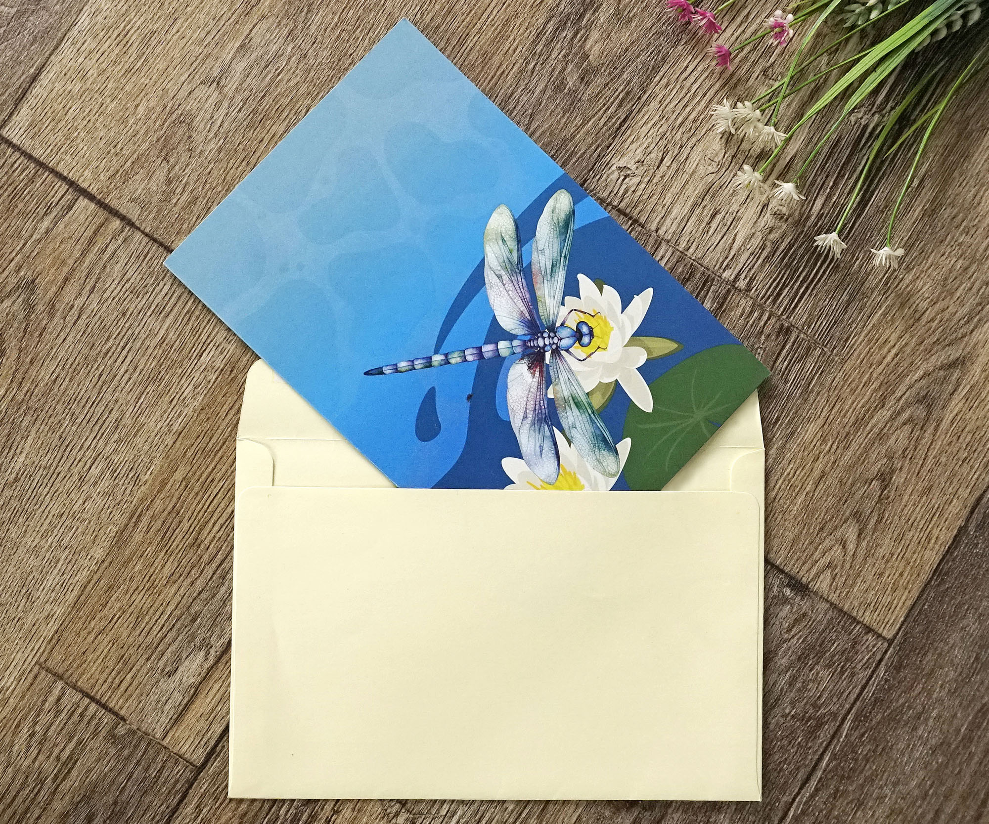 Custom Dragonfly 3D Pop-up Greeting Cards with water Lily Flower