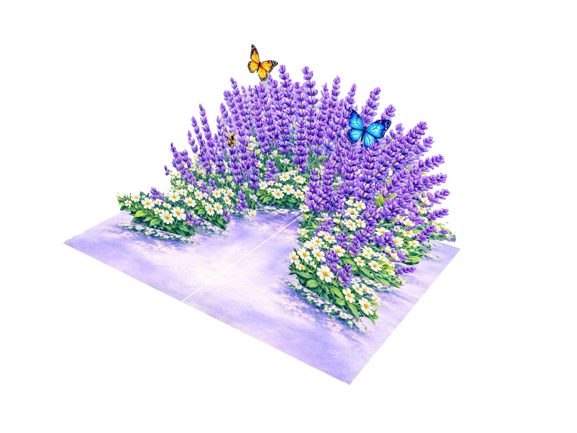 Greeting card 3D pop-up Natural Lavender and Daisy garden for Mothers’s Day